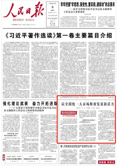 【人民日報頭版關(guān)注湖南】以全國統(tǒng)一大市場釋放發(fā)展新活力