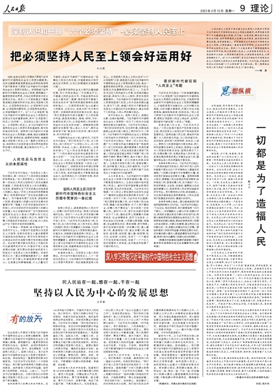 以縣處級以上領(lǐng)導干部為重點在全黨深入開展學習貫徹習近平新時代中國特色社會主義思想主題教育,是貫徹落實黨的二十大精神的重大舉措,對于統(tǒng)一全黨思想、解決黨內(nèi)存在的突出問題、始終保持黨同人民群眾血肉聯(lián)系、推動黨和國家事業(yè)發(fā)展,具有重要意義。學深悟透習近平新時代中國特色社會主義思想,必須把握這一重要思想的世界觀、方法論和貫穿其中的立場觀點方法。黨的二十大報告提出了繼續(xù)推進理論創(chuàng)新的科學方法,即必須堅持人民至上、必須堅持自信自立、必須堅持守正創(chuàng)新、必須堅持問題導向、必須堅持系統(tǒng)觀念、必須堅持胸懷天下。這“六個必須堅持”,是習近平新時代中國特色社會主義思想的立場觀點方法的重要體現(xiàn)。從今天起,本報推出深刻認識和把握“六個必須堅持”系列理論版。第一期圍繞如何深入學習領(lǐng)會“必須堅持人民至上”進行闡述。