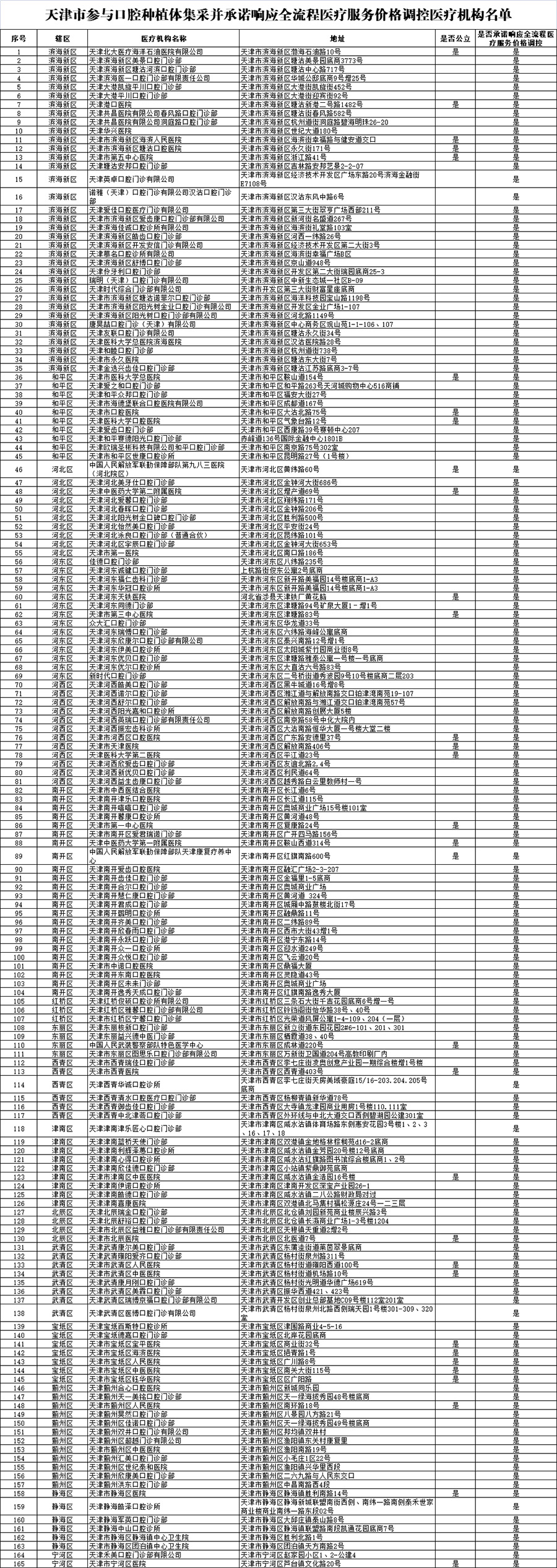 附件:天津市參與口腔種植體集采并承諾響應全流程醫(yī)療服務價格調(diào)控醫(yī)療機構名單