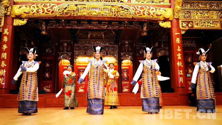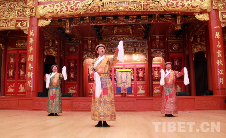圖為拉薩市城關(guān)區(qū)娘熱民間藝術(shù)團演員表演國家級非物質(zhì)文化遺產(chǎn)“嘎爾”攝影:劉莉