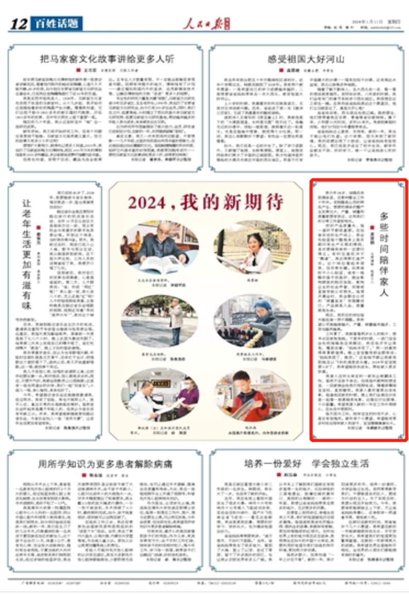 對我來說,最開心的是回家看到孩子們的笑臉。作為父親,我其實常覺虧欠:由于平時工作忙碌,陪伴孩子的時間相對較少。等今年工作、學(xué)習(xí)告一段落,就帶孩子們出趟遠門旅游,好好放松放松。
