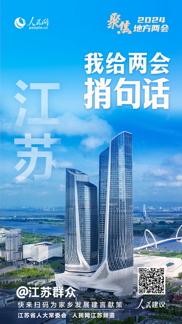 2024年江蘇省兩會即將召開。為廣泛匯集社會各界關(guān)于經(jīng)濟(jì)發(fā)展、民生保障、教育人才、科技創(chuàng)新、農(nóng)業(yè)農(nóng)村現(xiàn)代化等方面的好建議,即日起,人民網(wǎng)聯(lián)合江蘇省人大常委會推出“我給江蘇兩會捎句話”大型建言征集活動,廣大網(wǎng)友可通過人民網(wǎng)“領(lǐng)導(dǎo)留言板”小程序、“人民網(wǎng)+”客戶端等渠道,為家鄉(xiāng)發(fā)展積極建言獻(xiàn)策。