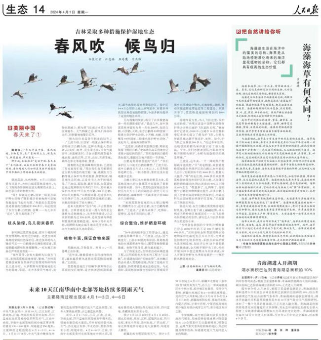 人民日報關(guān)注吉林濕地生態(tài):春風吹 候鳥歸