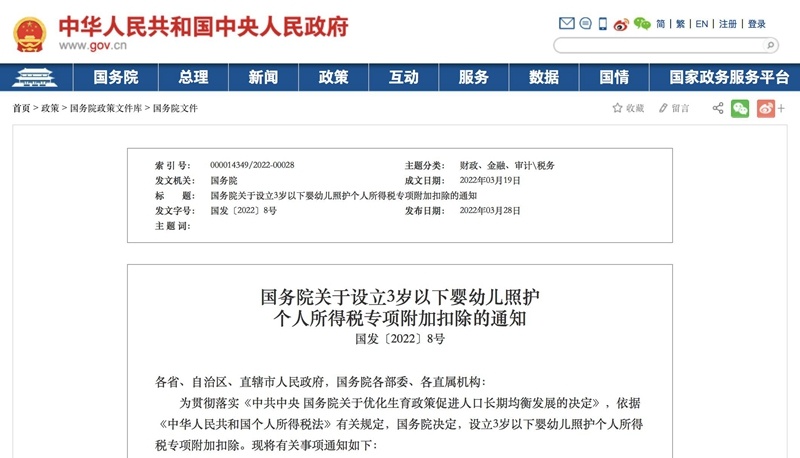 央廣網(wǎng)北京3月28日消息(記者劉柏煊)又有一項生育政策配套措施落地!今天(28日)下午,國務(wù)院印發(fā)通知,決定設(shè)立3歲以下嬰幼兒照護個人所得稅專項附加扣除,按照每個嬰幼兒每月1000元的標準定額扣除。新政回溯至今年1月1日起實施。