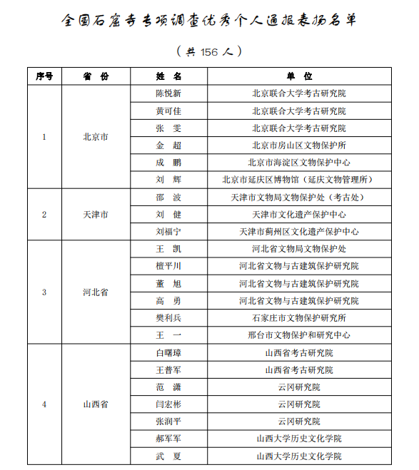 國家文物局通報表揚全國石窟寺專項調(diào)查先進單位和優(yōu)秀個人