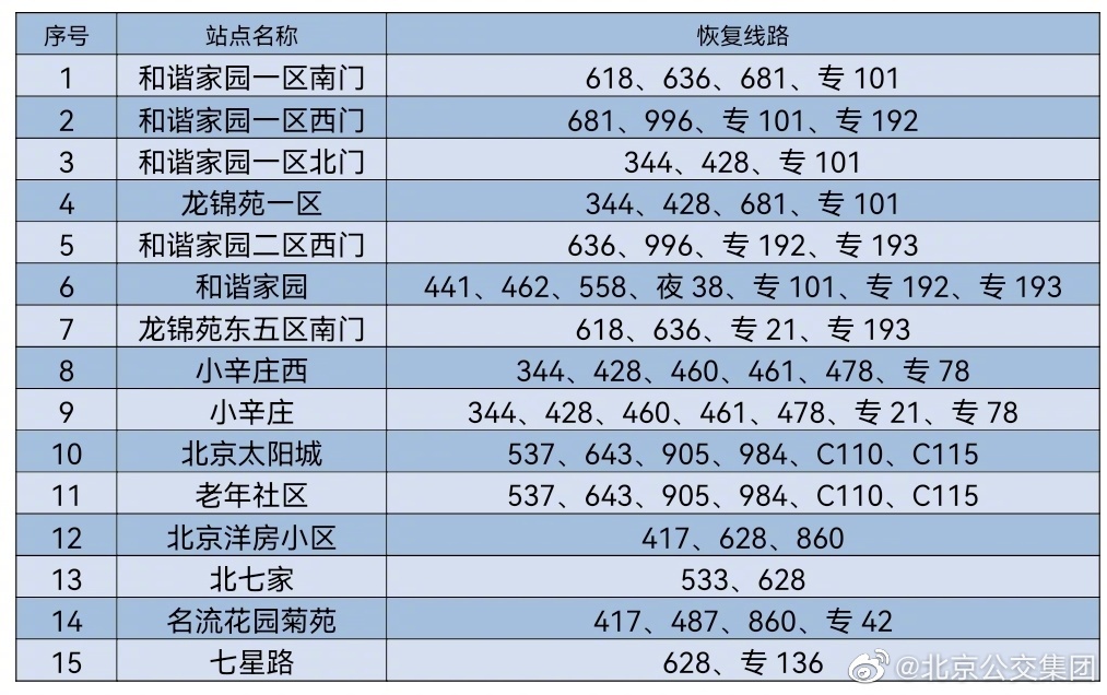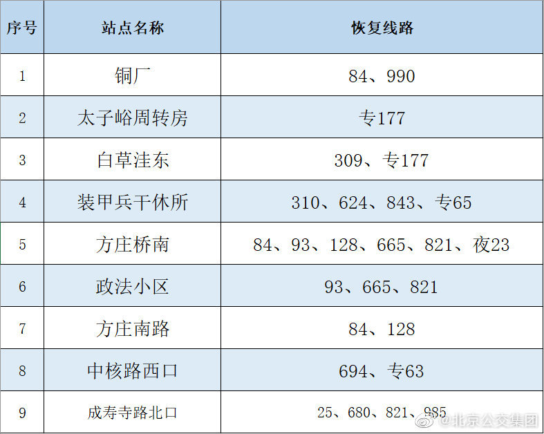 央廣網北京6月16日消息 據北京公交集團官博消息,按照防疫工作要求,自2022年6月16日首班車起,對前期途經昌平區(qū)封管控區(qū)域周邊采取甩站措施的35條線路以及前期途經豐臺區(qū)封管控區(qū)域周邊采取甩站措施的18條線路,恢復正常運營,恢復信息詳見下表。