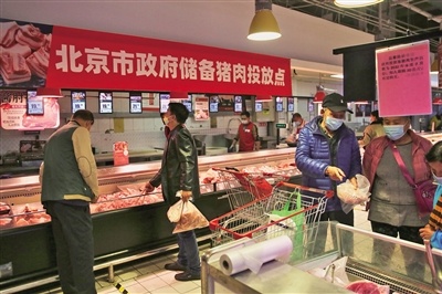 10月24日,物美超市大興黃村店,市民在“北京市政府儲(chǔ)備豬肉投放點(diǎn)”專柜選購商品。 新京報(bào)記者 鄭新洽 攝