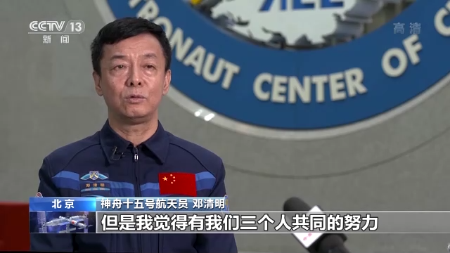 神舟十五號航天員 鄧清明:壓力是肯定有,但是我覺得有我們三個人共同的努力,有天地之間大協(xié)作,有地面的支持,這種壓力不算什么。我還是喜歡干有挑戰(zhàn)性的活,人生因奮斗而精彩,講的就是這個意思。