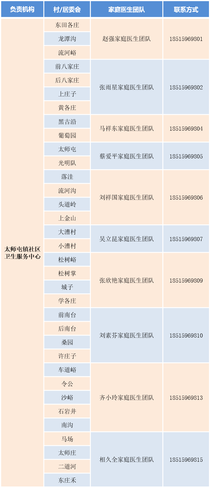 密云區(qū)家庭醫(yī)生團(tuán)隊(duì)信息