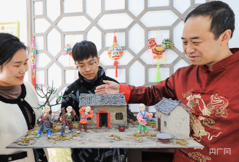 安秋平向游客介紹面塑作品《過大年》(央廣網(wǎng)發(fā) 吳庭棟 攝)