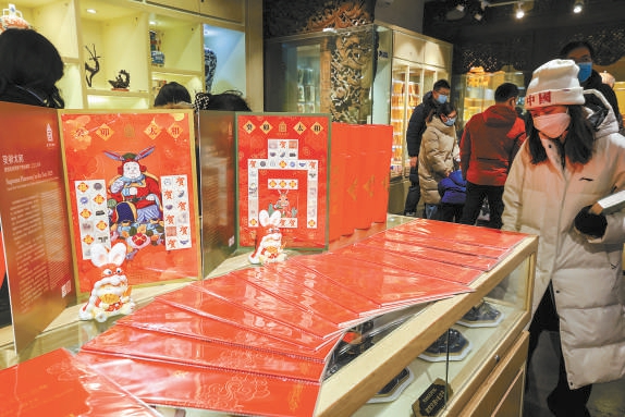 今年新推出的故宮文創(chuàng)郵票等琳瑯滿目的兔年文創(chuàng)產(chǎn)品上架。本報(bào)記者 鄧偉攝