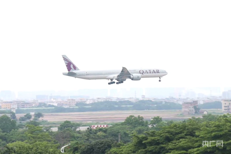 一國際航班降落廣州白云國際機場(央廣網(wǎng)記者 黃璐璐 攝)