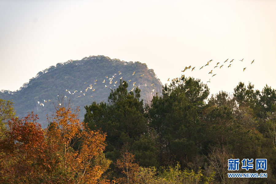 日前,在廣西百色市德??h城關(guān)鎮(zhèn)西讀村那西屯的田野上,成群白鷺或在覓食嬉戲、或在空中飛舞、或在樹梢停歇,與青山、綠水、紅楓構(gòu)成一幅美麗的自然生態(tài)畫卷。