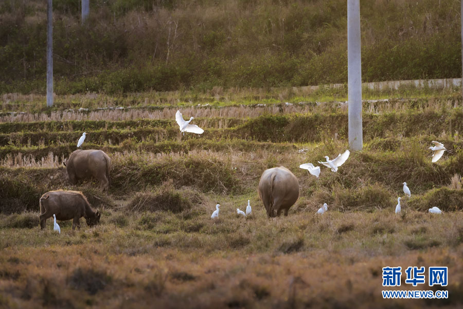 水牛與白鷺。賓綠濤 攝