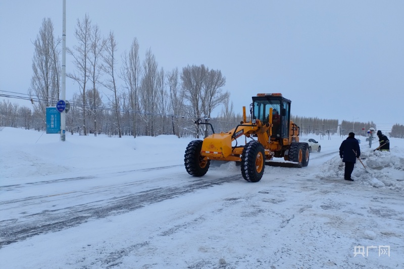在新疆烏魯木齊市,工作人員正在清理道路積雪(央廣網(wǎng)記者羅成 攝)