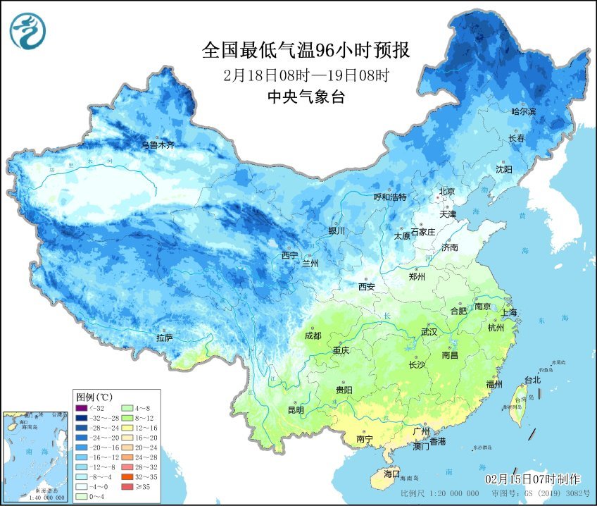 全國最低氣溫96小時預(yù)報圖(圖片來源:中央氣象臺)