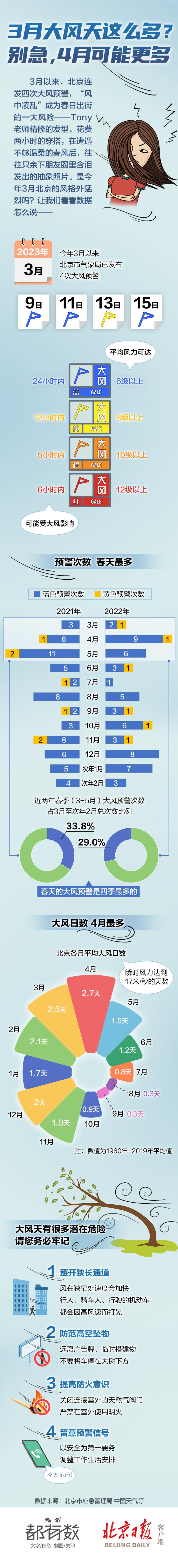 3月以來,北京連發(fā)四次大風(fēng)預(yù)警,“風(fēng)中凌亂”成為春日出街的一大風(fēng)險——Tony老師精修的發(fā)型、花費兩小時的穿搭,在遭遇不夠溫柔的春風(fēng)后,往往只余下朋友圈里含淚發(fā)出的抽象照片。是今年3月北京的風(fēng)格外猛烈嗎?讓我們看看數(shù)據(jù)怎么說!