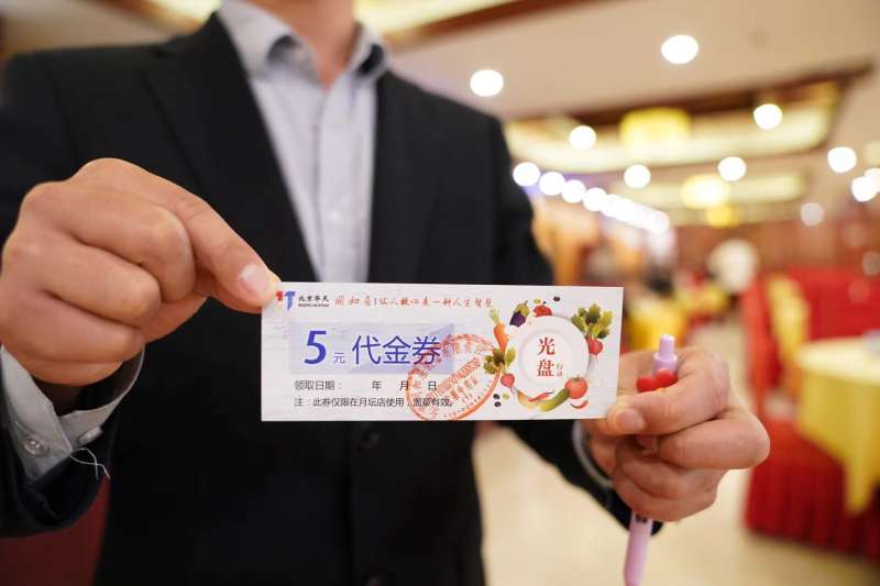 為鼓勵顧客打包剩余餐食,同和居月壇店會發(fā)放代金券。新京報記者 王飛 攝