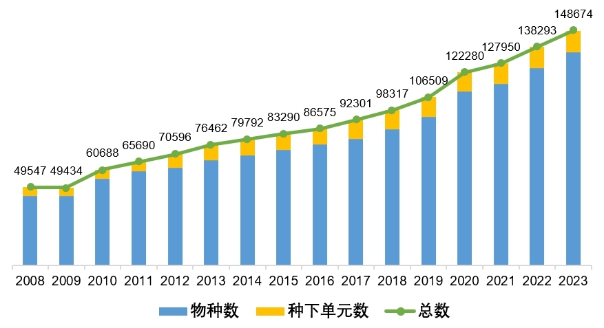 《中國(guó)生物物種名錄》歷年數(shù)據(jù)量變化圖 圖片來(lái)源:中科院生物多樣性委員會(huì)微信公眾號(hào)
