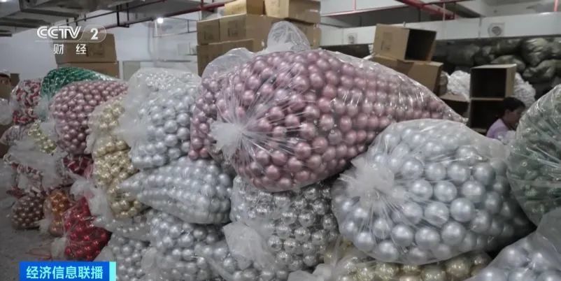 在義烏一家生產(chǎn)圣誕球的企業(yè)里,工人們忙著把剛剛組裝完的成品運(yùn)往倉庫。負(fù)責(zé)人告訴記者,今年他們的訂單同比增長30%左右。