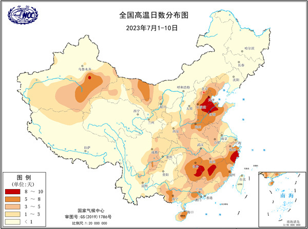 中國天氣網(wǎng)訊 今年7月上旬,我國高溫愈演愈烈,全國平均氣溫達(dá)到22.88℃,有超過400個(gè)國家級(jí)站點(diǎn)經(jīng)歷了1961年以來最熱的7月上旬。華北、黃淮多地高溫日數(shù)達(dá)到5~8天,其中河北東部、山東西北部一些地方出現(xiàn)了8~9天高溫。南方高溫進(jìn)入7月也開始發(fā)力,江南不少地方高溫日數(shù)達(dá)到了5天以上,湖南、江西、浙江、福建等一些地方甚至高溫全勤。