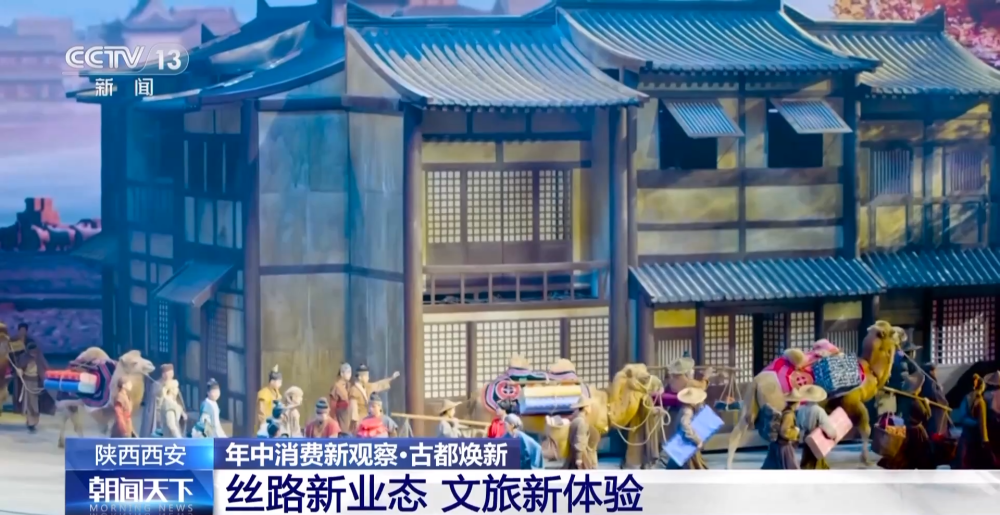 多元文化匯聚西安,帶來的不僅是進(jìn)口商品消費(fèi)的火熱,更有精神文化的滋養(yǎng)。臺(tái)上正在演繹的實(shí)景歌舞劇《駝鈴傳奇》,以盛唐為背景,講述了商貿(mào)駝隊(duì)勇敢開拓絲路的故事。通過光影虛實(shí)依次呈現(xiàn),伴隨驚心動(dòng)魄的故事,讓觀眾大呼過癮。