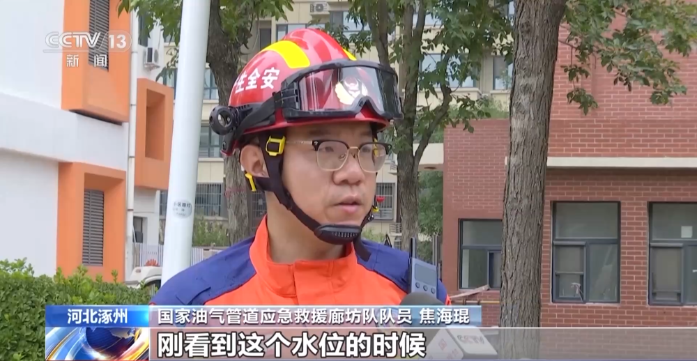 國(guó)家油氣管道應(yīng)急救援廊坊隊(duì)隊(duì)員 焦海琨:剛看到這個(gè)水位的時(shí)候,心里面其實(shí)也是很緊張的。根本看不清楚,水很渾濁,每下一步,踩實(shí)了以后再走下一步。