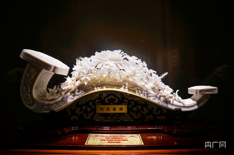 展出的德化白瓷作品《國花集瑞》(央廣網(wǎng)見習(xí)記者 李姍姍 攝)