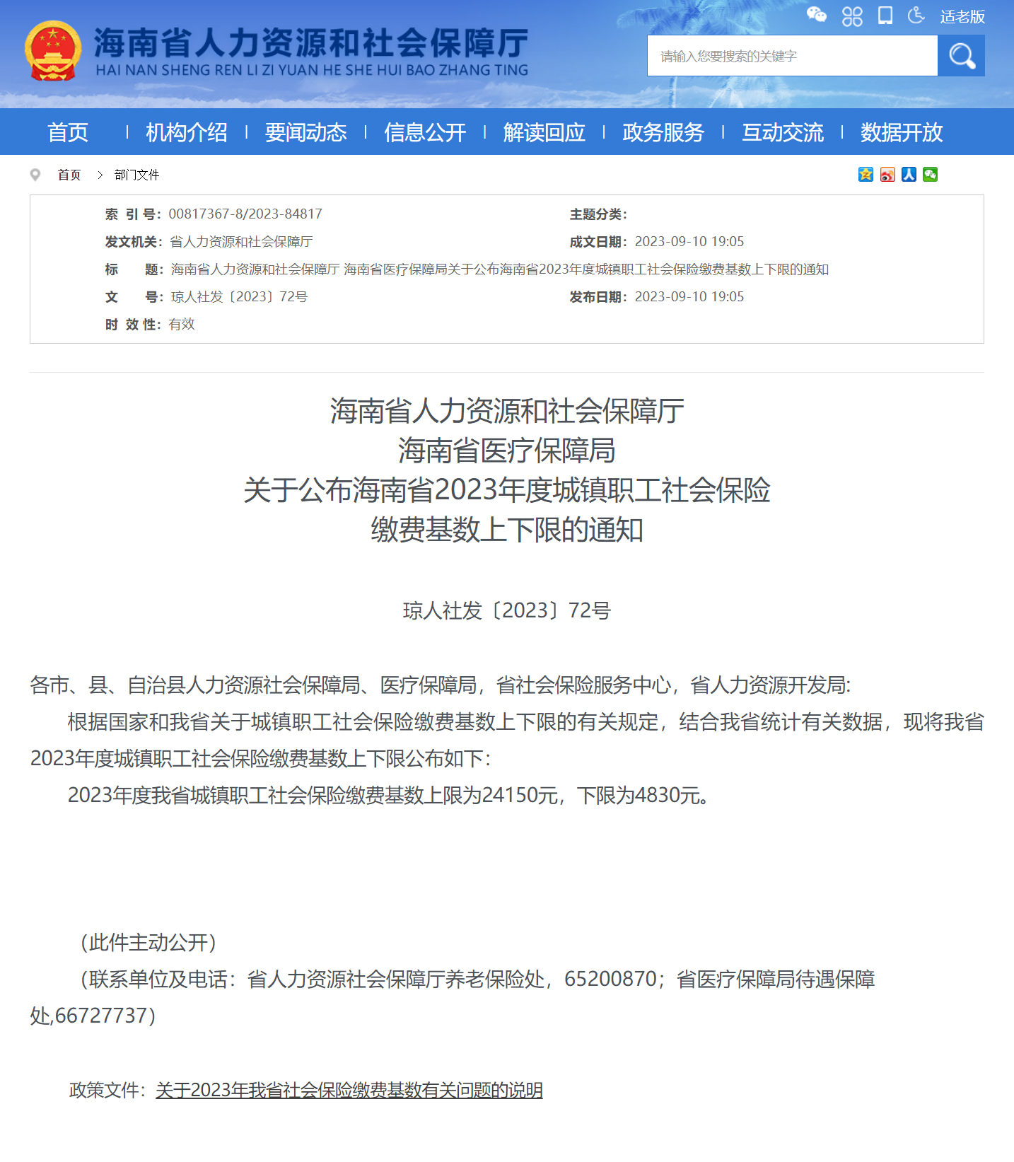 2023年海南社保繳費基數(shù)調整 上限24150元下限4830元