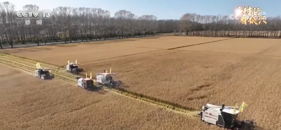 央視網(wǎng)消息:眼下,正是水稻收獲時節(jié)。在黑龍江墾區(qū)軍川農(nóng)場的水稻收獲現(xiàn)場,5臺水稻收割機(jī)正在協(xié)同進(jìn)行收割作業(yè),趁著晴好天氣搶收水稻。