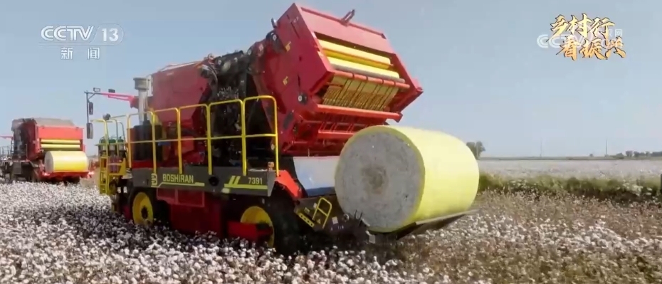 這幾年,新疆絕大部分地區(qū)都已經(jīng)實現(xiàn)了機(jī)械化采棉。棉花采收打包一體機(jī),除了自動采棉之外,還有打包的功能,當(dāng)?shù)厝私o它取了個特別形象的名字叫“下蛋機(jī)”。當(dāng)裝棉花的車廂裝滿后,它的尾部會自動吐出一個大棉包,這個棉包用金黃色包裝膜包裹著,從空中俯瞰像是一枚巨大的“金蛋”,既干凈又方便后續(xù)運(yùn)輸。這些“下蛋機(jī)”是這兩年最新上市的我國自主研發(fā)、自主生產(chǎn)的機(jī)器。