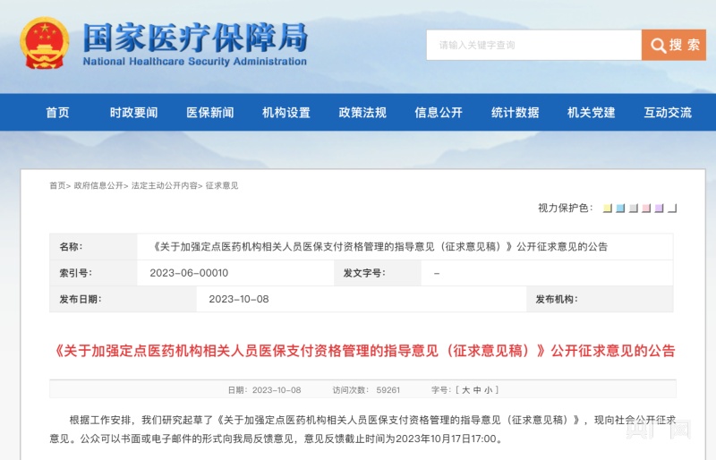根據(jù)國家醫(yī)保局發(fā)布的公告,征求意見反饋截止時(shí)間為2023年10月17日17:00。