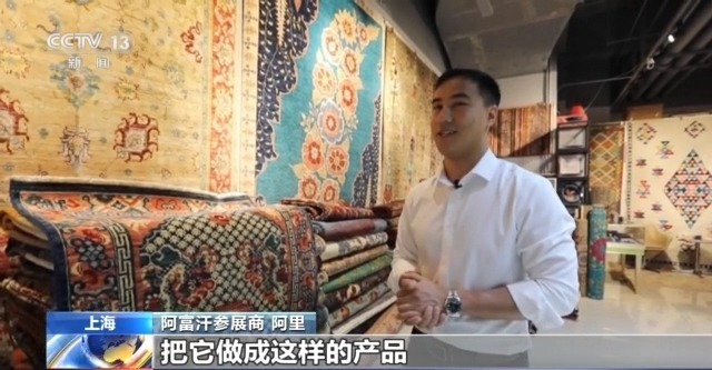 阿富汗參展商 阿里:我們按照客戶的要求不斷地改變這些圖案,有的地毯上可以看到龍,這也是我們學(xué)到了中國傳統(tǒng)文化之后,把它做成這樣的產(chǎn)品。