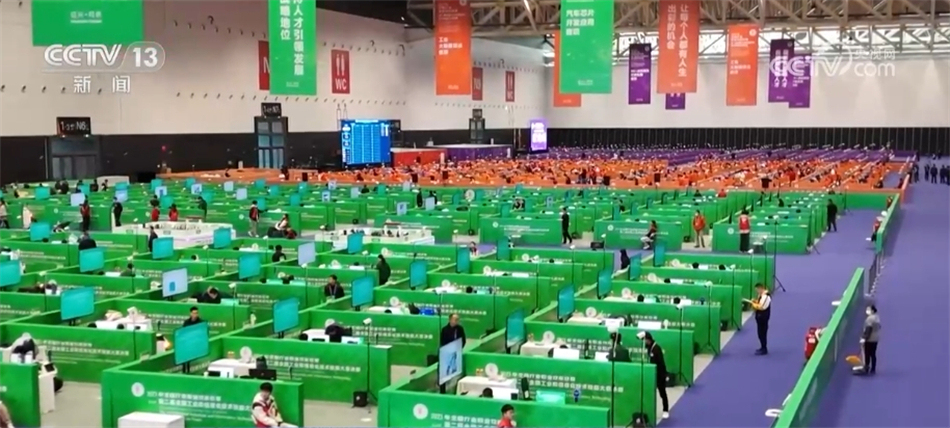 總臺(tái)央視記者 張叢婧:我身旁這一個(gè)個(gè)小隔間就是選手的比賽工位,可以看到有不同顏色,代表著四個(gè)賽項(xiàng),分別是工業(yè)互聯(lián)網(wǎng)安全、汽車芯片開(kāi)發(fā)應(yīng)用、工業(yè)大數(shù)據(jù)算法、5G+虛擬現(xiàn)實(shí)開(kāi)發(fā)應(yīng)用。除了工業(yè)大數(shù)據(jù)算法這一項(xiàng),其他三個(gè)賽項(xiàng)都是今年新設(shè)立的。