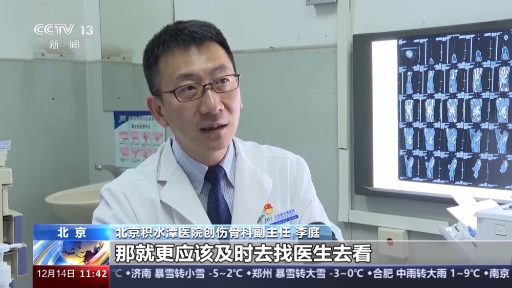 北京積水潭醫(yī)院創(chuàng)傷骨科副主任 李庭:那有些年齡更大的人滑倒摔傷之后直接坐一屁墩兒,都來不及撐地,坐一屁墩兒之后大胯(髖部)就摔折了,就是老年的髖部骨折。