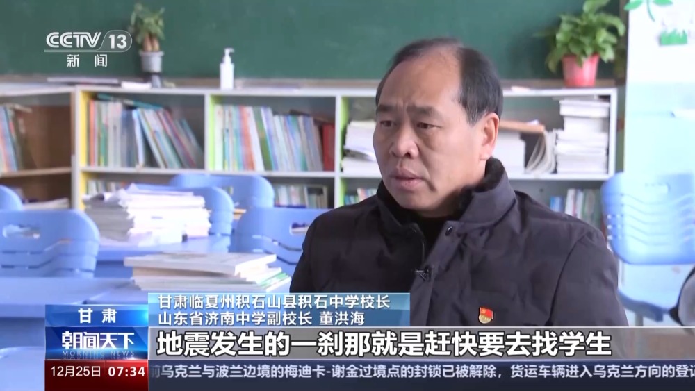 甘肅臨夏州積石山縣積石中學(xué)校長、山東省濟南中學(xué)副校長 董洪海:地震當(dāng)天的凌晨,就已經(jīng)有臨夏市的百姓到學(xué)校里邊送食物,有大量的救援的車輛、人員進入,也感到了整個社會支撐的力量。我不是一個人在戰(zhàn)斗,是一個很大的團隊。