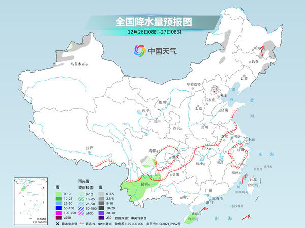 具體來看,今天,內(nèi)蒙古東北部、黑龍江東部、吉林東部、新疆北部、四川南部等地部分地區(qū)有小到中雪或雨夾雪。四川南部、云南中西部、海南島大部等地部分地區(qū)有小雨。