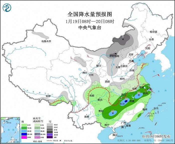 中央氣象臺:今明兩天中東部雨雪持續(xù) 20日起寒潮將強勢入侵
