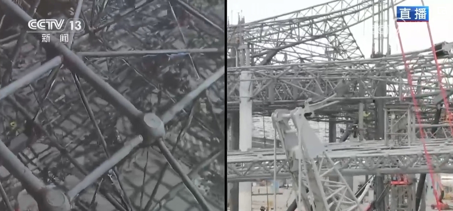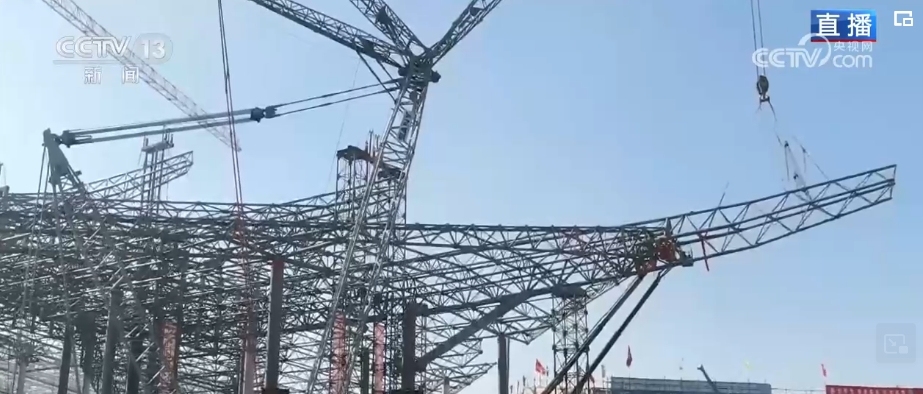 總臺(tái)記者 韓志濤:隨著最后一榀鋼梁順利吊裝到位,機(jī)場主航站樓鋼結(jié)構(gòu)合攏。航站樓的設(shè)計(jì)靈感來源于閩南傳統(tǒng)大厝,遠(yuǎn)看就像一只展翅飛翔的白鷺。白鷺身體部分就是主航站樓,像一個(gè)大屋蓋,總面積相當(dāng)于18個(gè)標(biāo)準(zhǔn)足球場,總用鋼量達(dá)到1.1萬噸,重量相當(dāng)于181節(jié)火車車廂。想把這些鋼梁安全架上去,誤差要控制在毫米級,可以說難度非常大,究竟是怎么完成的?建設(shè)者們想了一個(gè)巧妙的辦法,像拼搭積木一樣把屋蓋分為三個(gè)部分,先在樓面的原位進(jìn)行拼接,然后是分區(qū)域用液壓設(shè)備同步提升,最后在空中轉(zhuǎn)體調(diào)整角度。施工人員介紹,作業(yè)中最大單個(gè)提升區(qū)面積達(dá)3萬多平方米,提升重量有2600多噸,由數(shù)萬個(gè)構(gòu)件拼接而成。完成后同步啟動(dòng)60多個(gè)液壓提升點(diǎn)向上整體提升1米,懸空后通過空中旋轉(zhuǎn)7度,調(diào)節(jié)到設(shè)計(jì)姿態(tài),最后提升到31米后精準(zhǔn)安裝。