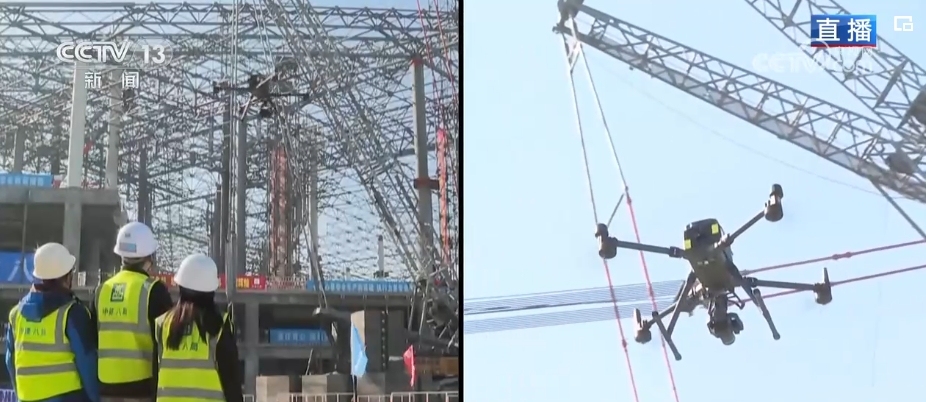 總臺(tái)記者 韓志濤:施工當(dāng)中要在高空中定位,并且多臺(tái)液壓機(jī)同時(shí)提升,誤差要控制在3毫米以內(nèi),這樣的精度是如何把控的?屋蓋上空有無人機(jī)在飛行,它在完成攝影的同時(shí),會(huì)同步按照規(guī)劃好的航測路線,直接構(gòu)建屋蓋網(wǎng)架的高精度三維模型,同時(shí)完成實(shí)體與數(shù)字模型的精準(zhǔn)對接。這些鋼梁上都有一個(gè)應(yīng)變傳感器,它是一個(gè)診斷小能手,可以為屋蓋結(jié)構(gòu)提供全天候監(jiān)測診斷服務(wù),通過精準(zhǔn)“把脈”保證屋蓋網(wǎng)架結(jié)構(gòu)從施工到運(yùn)營的數(shù)據(jù)安全。施工方還創(chuàng)建了規(guī)劃設(shè)計(jì)統(tǒng)籌、目標(biāo)工期管控、特殊工藝運(yùn)用等“三大智囊平臺(tái)”,通過數(shù)字化、智能化全力推進(jìn)機(jī)場建設(shè)。