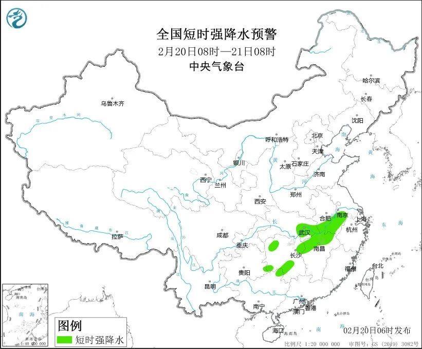 預(yù)計2月20日8時至21日8時,安徽西南部、湖北東部和南部、湖南中北部和西南部、江西中北部、貴州東南部、廣西東北部等地的局地將有8至10級雷暴大風(fēng)或冰雹天氣;安徽中南部、江蘇西南部、湖北東部、湖南南部和西部、江西北部、廣西東北部等地的部分地區(qū)將有短時強(qiáng)降水天氣,最大小時雨量20至30毫米,局地可達(dá)35毫米以上。