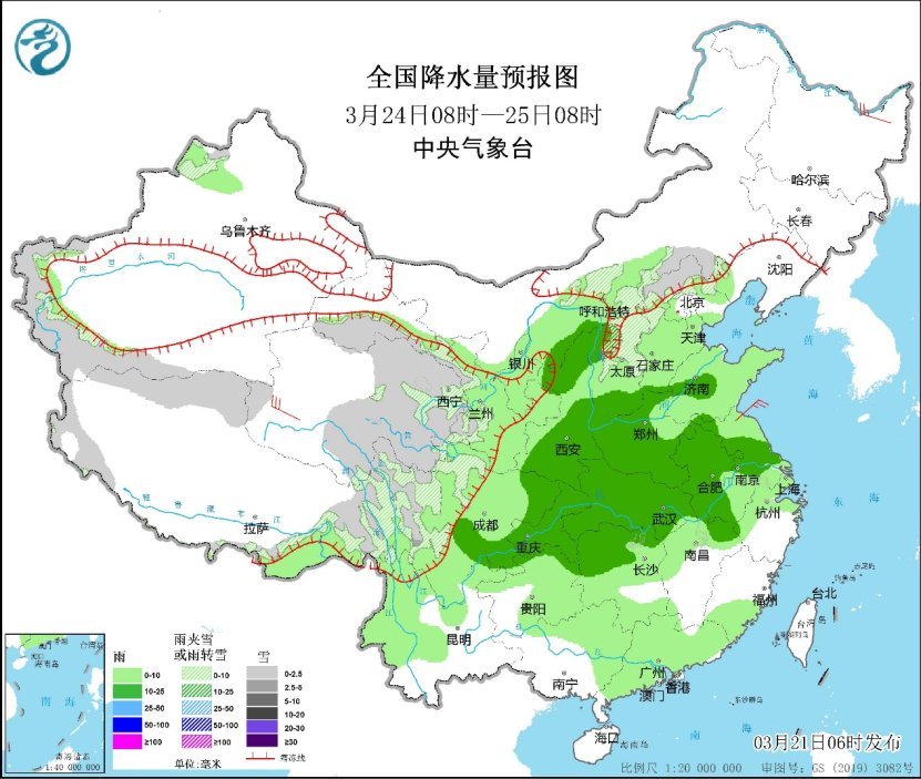 受冷空氣影響,22日夜間至25日,中東部大部地區(qū)自北向南將出現(xiàn)4~6℃降溫,部分地區(qū)降溫8~10℃,長(zhǎng)江中下游及其以北地區(qū)將有4~5級(jí)偏北風(fēng),陣風(fēng)可達(dá)6~8級(jí),內(nèi)蒙古中東部及東北地區(qū)西部等地局地有揚(yáng)沙或浮塵;受冷暖空氣共同影響,西北地區(qū)東部、黃淮、江淮、江漢、江南中北部、四川東北部、重慶及貴州東部等地的部分地區(qū)有中到大雨,局地暴雨或大暴雨,上述地區(qū)局地伴有短時(shí)強(qiáng)降水、風(fēng)雹等強(qiáng)對(duì)流天氣。