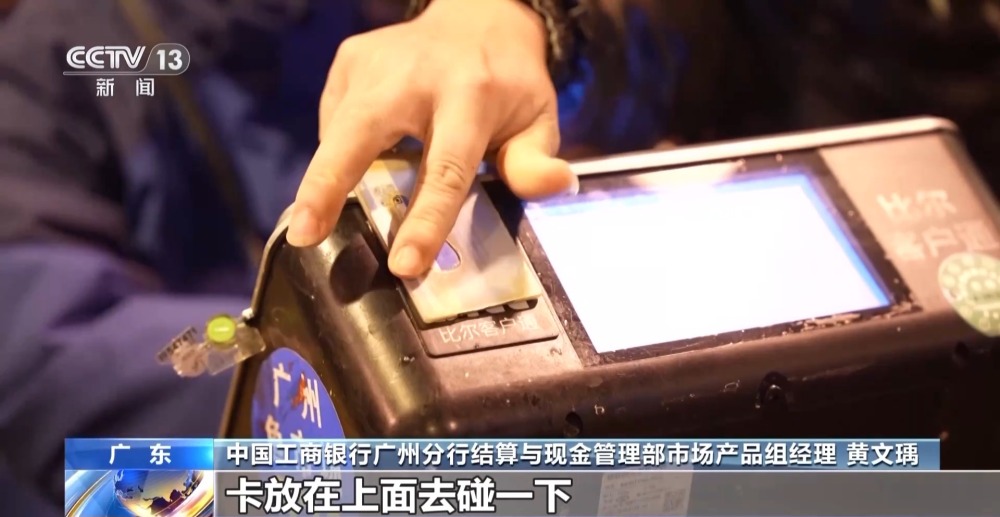 中國(guó)工商銀行廣州分行結(jié)算與現(xiàn)金管理部市場(chǎng)產(chǎn)品組經(jīng)理 黃文瑀:卡放在上面去碰一下,做一個(gè)身份識(shí)別,然后再把商品放在秤上面去稱重??梢钥吹秸麄€(gè)交易的總金額是多少,實(shí)時(shí)同步到我們這邊,去完成買賣雙方賬戶資金的轉(zhuǎn)賬。