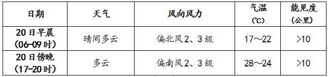 21日傍晚可能出現(xiàn)雷陣雨天氣,雨量不大,請關(guān)注最新天氣預(yù)報;大部分時間體感舒適,但晝夜溫差較大,早晨體感偏涼,午后偏熱,請根據(jù)氣溫變化及時調(diào)整著裝,以防感冒。