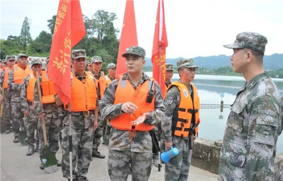 下午15時,大竹縣烏木水庫大堤上,200余名預備役官兵身著橘色救生衣集結完畢,應急分隊的紅旗迎風招展,機關各科協(xié)調(diào)的保障力量也源源不斷往集結地域開進。15時20分,應急分隊已到達指定地域,救援物資全部到位。