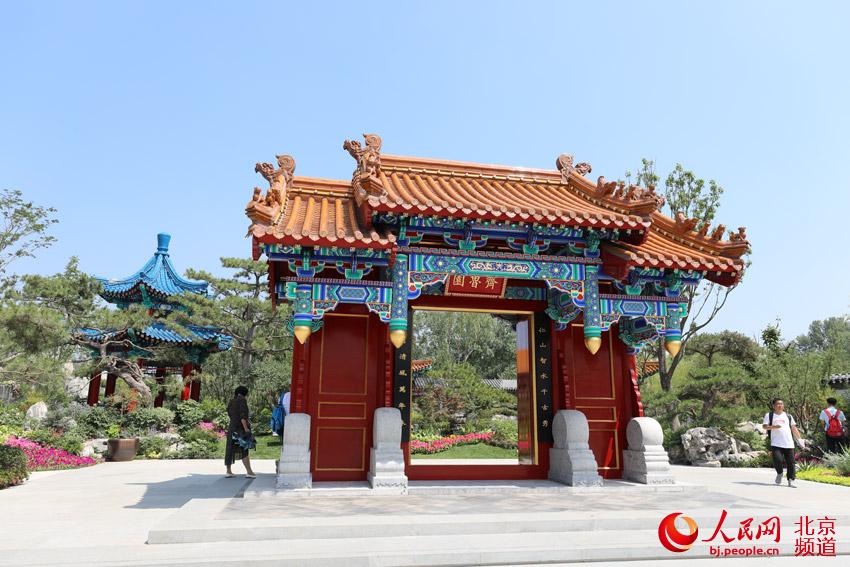 步入山東展園,第一景便是齊魯迎賓。這里以孔府重光門為設(shè)計原型,提名“齊魯園”,寓意儒家思想是中華民族的精神家園,隱喻孔子“天下第一家”的概念。人民網(wǎng)尹星云 攝