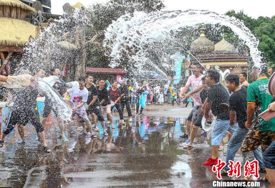 圖為游客們手持水槍、水盆等道具展開“激戰(zhàn)”?!$娦?攝