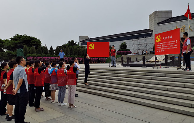 宛平城地區(qū)新時(shí)代文明實(shí)踐所的25名青年志愿實(shí)踐者們一起在抗日戰(zhàn)爭(zhēng)紀(jì)念館前重溫入黨誓詞。