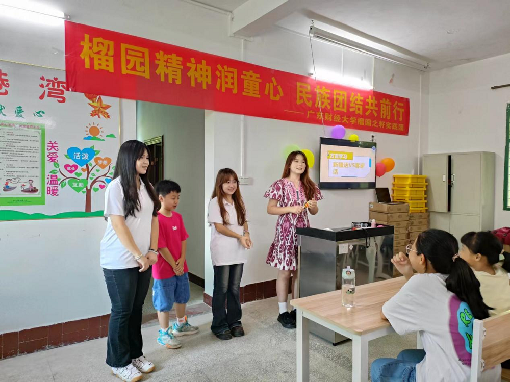7月7日-7月13日,廣東財經(jīng)大學“榴園之籽”實踐團組織了廣財大的各民族精英大學生到興寧市開展鄉(xiāng)村支教活動,隊員們教授民族特色歌舞、繪畫手工、武術體育和勞動教育等內(nèi)容,助力兒童德智體美勞全面發(fā)展。隊員們還為兒童展示各民族的文化特色,讓他們感受到不同民族文化的魅力,并通過講述廣東人民援疆、援藏的事跡,特別是“榴園”校友黃海芬扎根西藏奉獻的事跡,引導孩子們鑄牢中華民族共同體意識。隊員們在支教中傳遞“榴園精神”,鼓勵孩子們一起學習“凝心聚力、團結奮斗”的“榴園精神”,激勵他們勤奮向學、學會感恩,長大成才后回饋家鄉(xiāng)和社會。