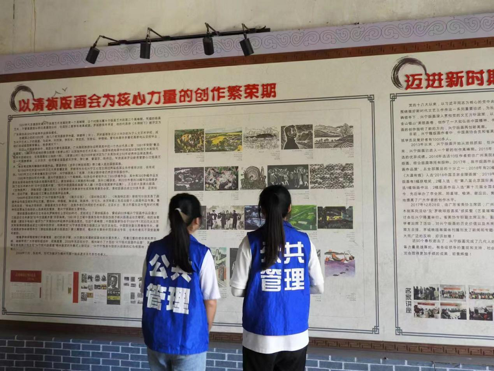 7月7日-7月10日,廣東財經(jīng)大學“版興紅韻”實踐團前往興寧市葉塘鎮(zhèn)開展主題為“激活興寧版畫資源,弘揚紅色革命文化”的“百千萬工程”突擊隊行動,隊員們參觀了位于興寧市葉塘鎮(zhèn)的磐安圍,抗戰(zhàn)木刻作品展覽區(qū)、羅映球版畫作品展覽區(qū)等版畫作品展覽讓隊員們感受到非遺文化的魅力,隊員們還開展了版畫畫家訪談、參觀“十里版畫長廊”、記錄版畫故事、青少年問卷調查等活動,讓他們對探索弘揚傳統(tǒng)非遺文化與蘇區(qū)精神有了新的思考。